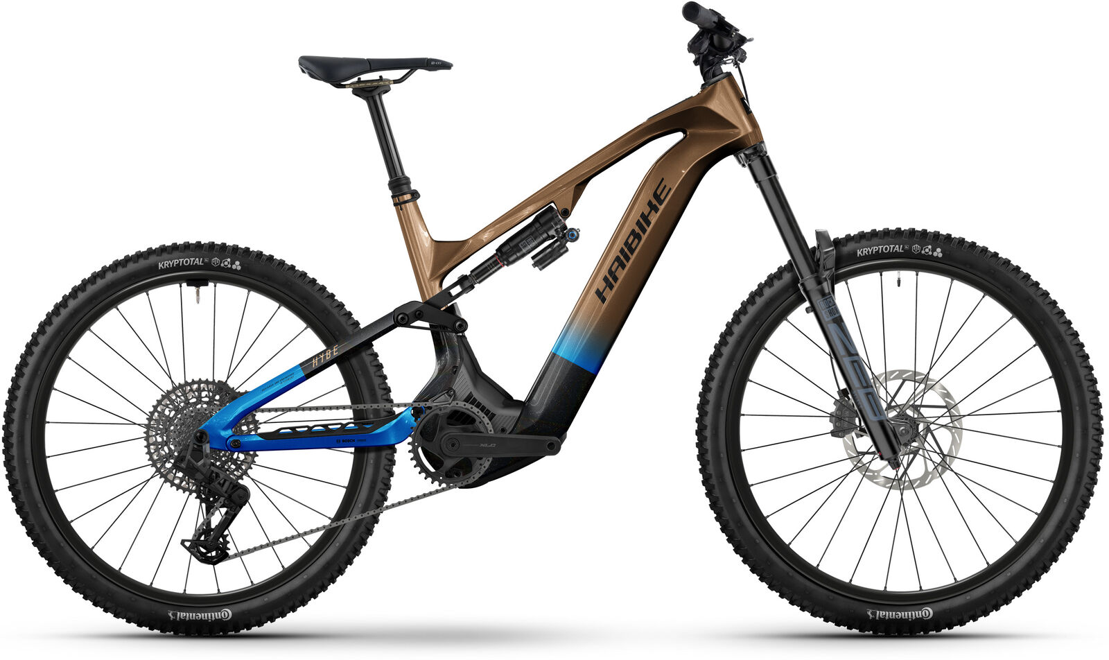 | Details | Always on the go and ready to race? Then our HYBE CF 9 with its carbon frame is your perfect match! This eFully will reliably take you through any terrain to the finish line with plenty of power and flow. With 170mm of front travel 160mm at the back and a mullet setup featuring mixed wheel sizes you'll get optimal downhill performance and perfect uphill traction. The powerful Bosch Performance CX Smart System motor provides strong acceleration uphill while the 800Wh battery guarantees maximum range for all your trail adventures. Big jumps tricky root sections and technical rock gardens this eMountain bike handles them with ease! The perfect bike for all your adventures whether in touring or racing mode. Motor: Bosch Performance Line CX Torque: 85 Nm Battery: Bosch Powertube 800Wh Display: Bosch Kiox 400C + Mini Remote Frame: High Uni Rear Shock: Rockshox Super Deluxe Select 230x65mm Standard Mount Fork: Rockshox ZEB Base Rush RC Boost DebonAir 170 mm Headset: Acros Semi-integrated ICR Top cup / bottom BlockLock ZS56/ZS56 Stem: XLC Not Adjustable ST-M50 Dia. 35 mm L: 40 mm A-Head Handlebar: XLC Riser Bar HB-M34 Dia. 35 mm Rise: 20 mm backsweep 9deg. Bar Tape / Grip: XLC GR-S34 Gravity Grip Brakes Levers: Sram DB Maven Bronze Stealth-BL Brake Calipers: Sram Hydraulic Disc brake DB Maven Bronze 4 pistons organic pad 220 mm Tyres: Continental Kryptotal-Fr Enduro Soft foldable skin SL 60-622 Rear Derailleur: Sram S1000 Eagle AXS T-Type 12s wireless Shift Levers: Sram Triggershift AXS Pod Controller Chain: Sram Chain GX Eagle T-Type 12s Cassette: Sram XS-1275 Eagle T-Type XD Chainset: XLC CR-E18 CRNKS + SRAM CR T-Type Bosch DU38 DM 160 Pedals: XLC Flat Pedal PD-M29 w/ Reflector + integrated Pins Saddle: Prologo Proxim W450 Performance 145 mm Seatpost: XLC Dropperpost Dropper SP-T21 Dia. 34.9 mm Travel: 125 mm 400 mm |