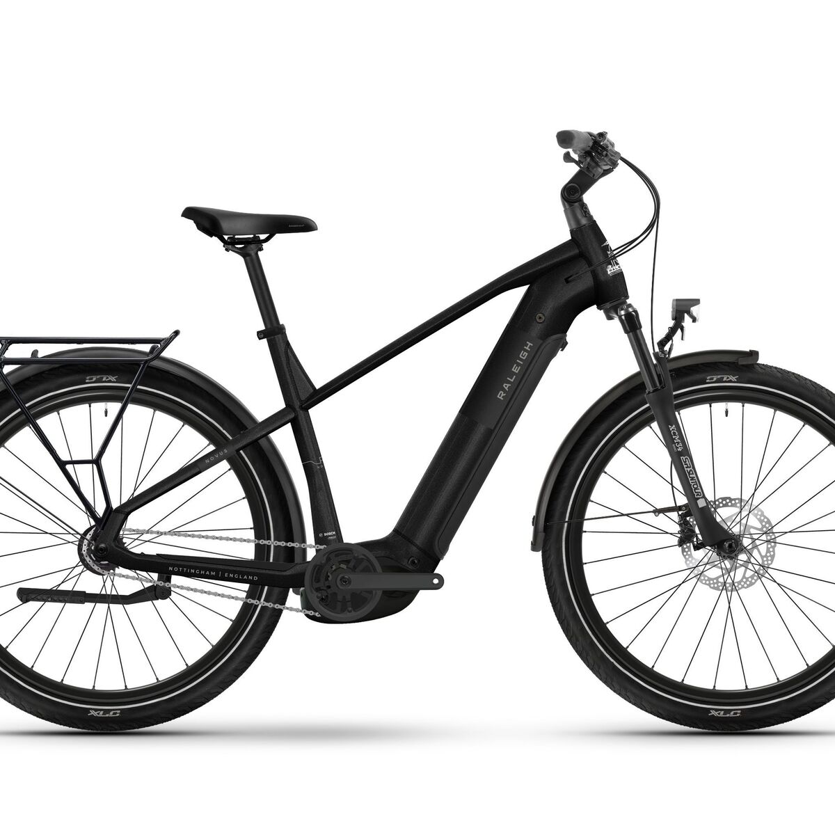 Details The Raleigh Novus Hub Gear. With 650B wheels capable geometry powerful Bosch Performance Line motor 600Wh Powertube battery and the clever Modular Rail System (MRS) Fully equipped with intergrated lights mudguards and a MIK rear carrier. With a 5 speed Shimano Nexus Hub Gear system and Shimano Hydraulic disc brakes. Available in both Crossbar and Low Step versions.