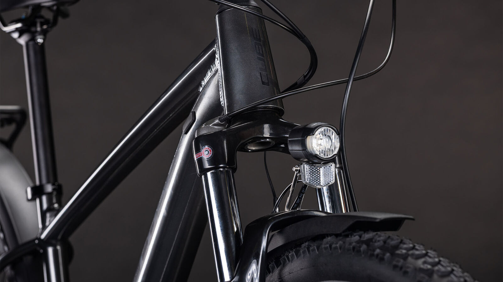 | Details | Can one bike really do it all? At CUBE we think the answer is "yes" - and you're looking at it. Mudguards a lighting system kickstand and versatile luggage carrier give you the tools you need to take on the weekday commute or a dash across town. Meanwhile the 100mm suspension fork Shimano Deore 1x12 gears Shimano hydraulic disc brakes and grippy Schwalbe 2.25in tyres are all you need to keep on riding when the tarmac ends. And our Size Split system means there's a perfectly proportioned Aim SLX FE for every rider. It's ready for anything. Frame description With the Aim FE we're redefining versatility. The included full-length mudguards luggage carrier and lighting system mean it has everything you need right out of the box. There's a threaded bottom bracket and Internal Cable Routing and the flat disc mount integrates seamlessly with the included kickstand. Carefully thought-out geometry includes a lower top tube for more confident handling and there's plenty of room to run wide grippy and comfortable 2.25in tyres. Our Size Split system has an expanded range too so however tall you are there'll be an Aim FE that fits perfectly. With the Aim FE we're redefining versatility. The included full-length mudguards luggage carrier and lighting system mean it has everything you need right out of the box. There's a threaded bottom bracket and Internal Cable Routing and the flat disc mount integrates seamlessly with the included kickstand. Carefully thought-out geometry includes a lower top tube for more confident handling and there's plenty of room to run wide grippy and comfortable 2.25in tyres. Our Size Split system has an expanded range too so however tall you are there'll be an Aim FE that fits perfectly. Frame: Aluminium Lite AMF Double Butted Internal Cable Routing Tapered Head Tube Flat Mount Brake SIC Mount FM Kickstand Mount Fork: SR Suntour XCM Disc 100mm Remote Lockout Headset: CUBE FPH868 Semi-Integrated Stem: CUBE Performance Stem SLX FPI-Link 31.8mm Handlebar: CUBE Rise Trail Bar 680mm Grips: ACID Icon Rear derailleur: Shimano Deore RD-M6100-SGS ShadowPlus 12-Speed Shifters: Shimano Deore SL-M6100-R Rapidfire Plus Brake system: Shimano BR-MT200/UR300 Hydr Disc Brake PM/FM (160/160) Bottom Bracket: Prowheel BSA PW-MB68 Crankset: ACID MTB Alloy 32T Crankset chainring sizes: 32T Cassette: Shimano Deore CS-M6100 10-51T Number of gears: 12 Chain: KMC X12 Rims: ACID EX25 32H Disc Tubeless Ready Front hub: Shimano DH-3D37 Hub Dynamo QR Centerlock Rear hub: Shimano FH-QC500-MS QR Centerlock Tires: Schwalbe Smart Sam Active 2.25 Pedals: CUBE PP MTB Saddle: ACID Venec Lite Seat post: CUBE Performance Post 27.2mm Seat post = dropper Yes/No: NO Front light: CUBE Shiny 50 Rear light: ACID Mudguard Rear Light PRO-D 6V AC Kickstand: ACID FM Pure Kickstand Mudguard: ACID 65 Bell: Easy Bell Carrier: ACID Semi-Integrated Carrier ACID RILink Adapter Compatible and Rail |